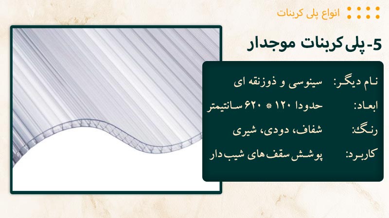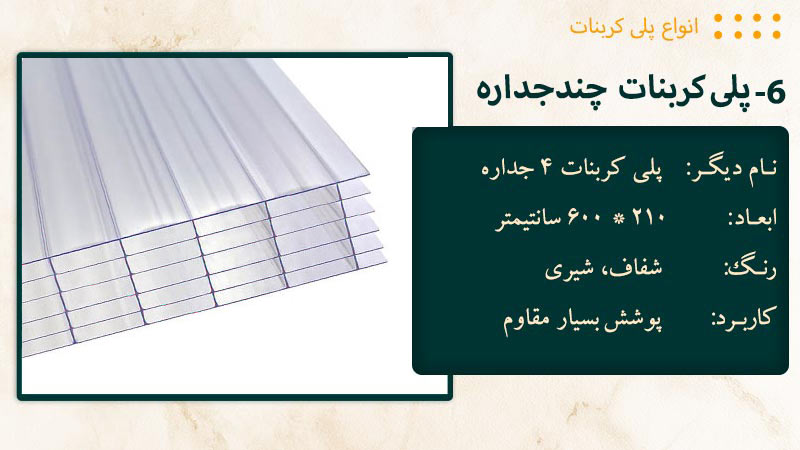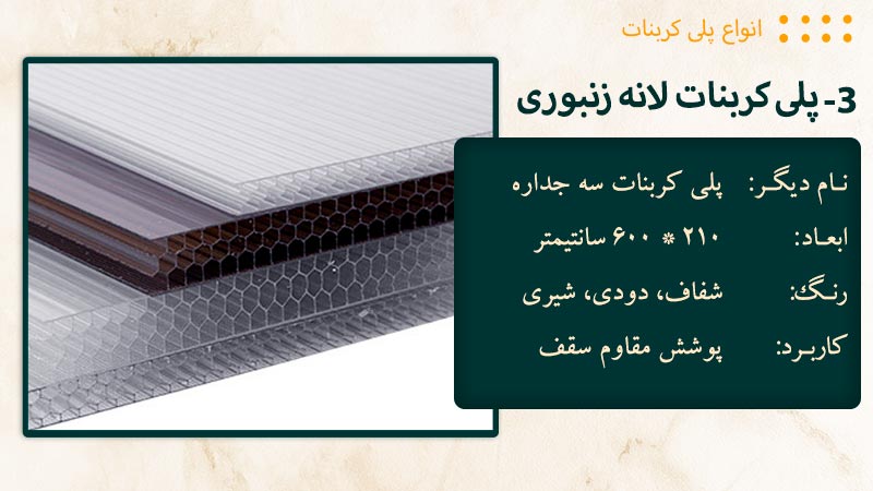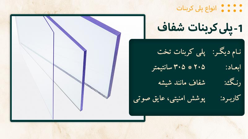 پلی‌کربنات ورقی پلاستیکی و شفاف از خانواده ترموپلاستیک‌هاست که به دلیل مقاومت بالا در برابر ضربه، اشتعالزا نبودن، وزن سبک و قابلیت تحمل شرایط جوی، در صنایع ساختمانی، گلخانه‌ای و صنعتی به عنوان پوشش سقف و پنجره ها جایگزین شیشه می‌شود.