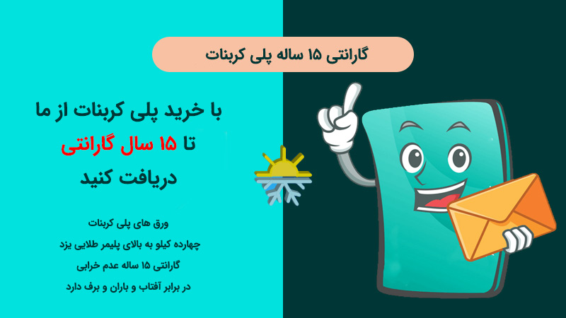 • ارائه گارانتی 15 ساله ورق ها برای عدم تغییر رنگ و پوسیدگی ورق پلی کربنات در برابر آفتاب و شرایط جوی.